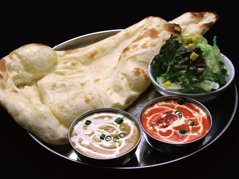 3-6 2種類のカレーセット Fセット(バターチキン+日替りカレー)+タンドリーチキン(1P)+シークカバブ(1P)